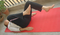 Take deep breath and hold. Bend the knees. Bring both feet together, heels and toes together. Place your feet close to the buttock and then extend the leg fully at an angle of 45 degree. Again bring feet closer to the buttock moving the leg in such a fashion so as to make a circular motion of feet. This movement resembles as if you are cycling.